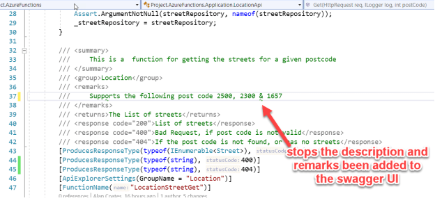 We used AzureExtensions.Swashbuckle which makes it so easy to add swagger documentation to Azure functions, but we noticed that the description and remarks were missing for a number of functions?